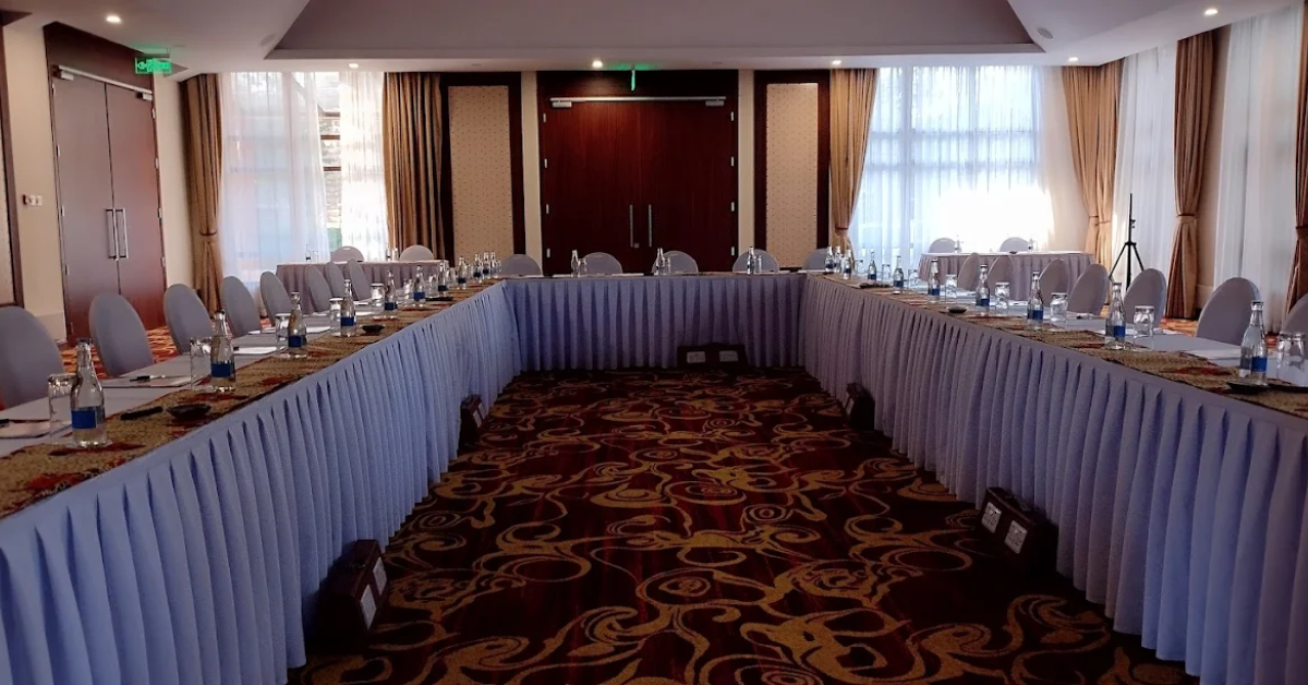 The hotel features 120 guest rooms and 3 meeting rooms, including a largest conference room of 500 square meters. The total event space spans 800 square meters, suitable for corporate events, weddings and social gatherings.